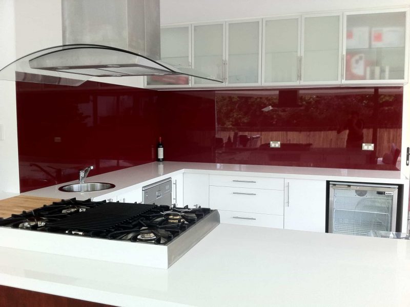 13. Mẫu kính ốp bếp màu đỏ rubi phù hợp cho mọi không gian nhà